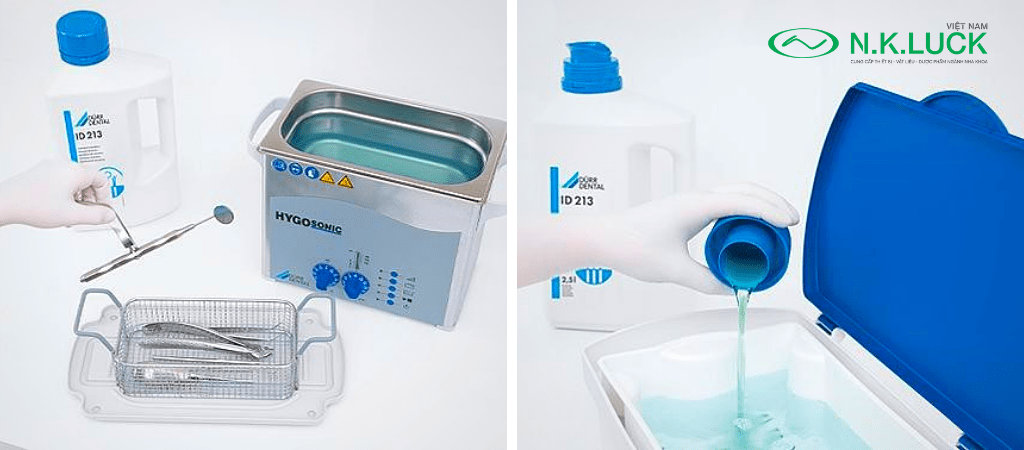 Bác Sĩ có thể ngâm dụng cụ trong dung dịch khử khuẩn ID 213 để khử khuẩn vật dụng thông thường, Orotol Plus để khử khuẩn ống hút nước bọt, MD 520 dùng để khử khuẩn dấu phục hình, ID 222 dùng để khử khuẩn mũi khoan,…của thương hiệu Durr Dental (Đức). Bác Sĩ có thể xem thêm các sản phẩm khác trên trang Dung dịch vệ sinh của N.K.luck.