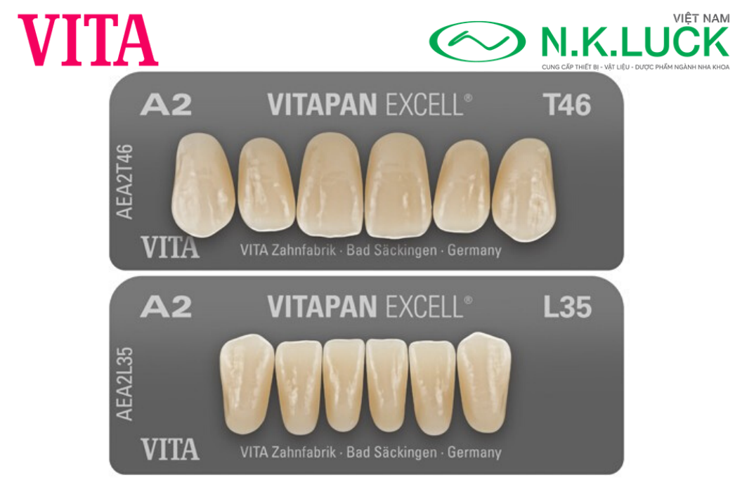 VITAPAN EXCELL có sẵn 11 sắc thái VITA 3D-Master và 15 sắc thái A1-D4 cổ điển mang nét riêng biệt của thương hiệu.