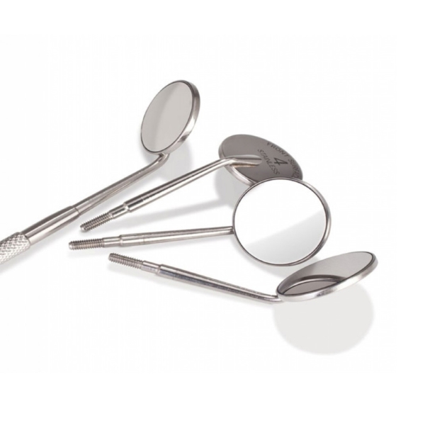 Gương nha khoa có cấu tạo gồm tay cầm, thân gương và mặt gương tráng lớp phản quang