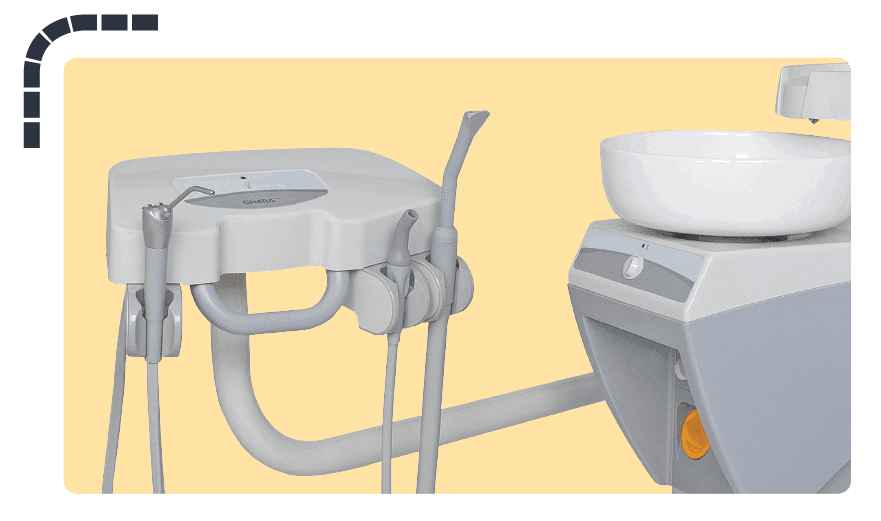 Được đặt cạnh bên của ghế giúp thuận tiện hơn cho Nha sĩ.