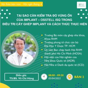 Huấn luyện 30 Tháng 3, 2022 Chủ đề trao đổi bàn tròn “Tại sao cần kiểm tra độ vững ổn của implant trong điều trị cấy ghép implant và cách thức thực hiện?” Đọc thêm