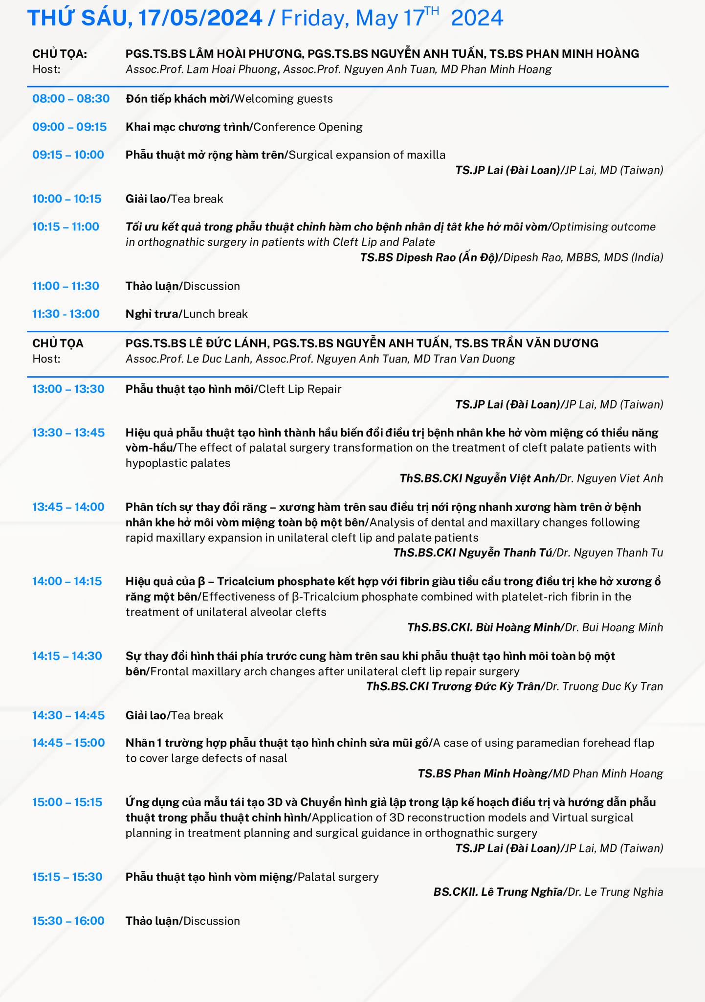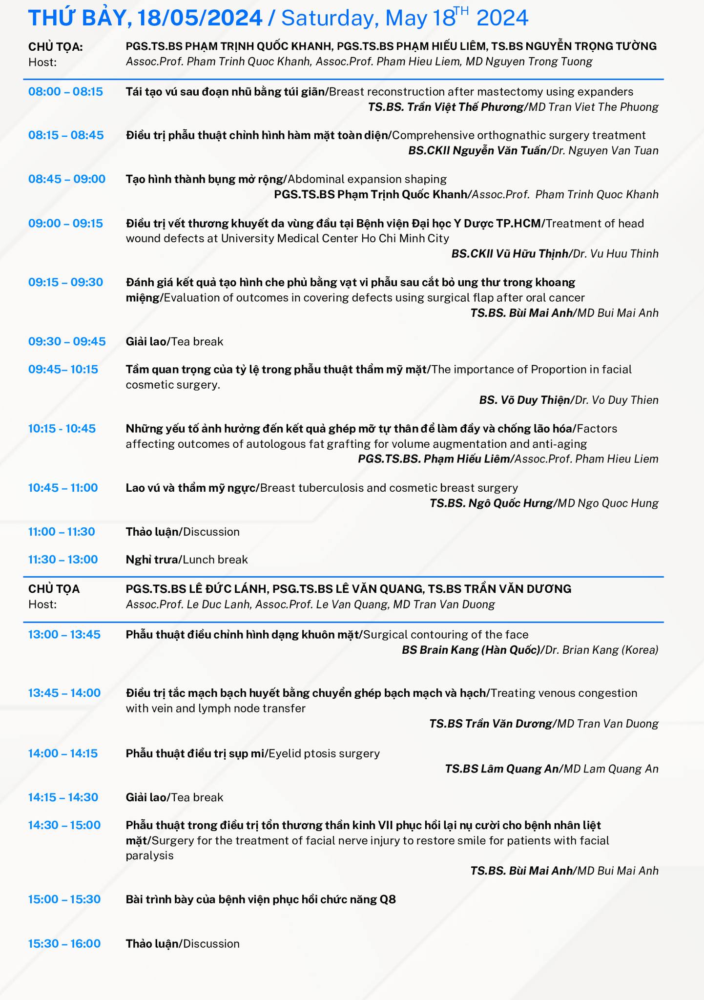 Kính mời Quý Bác sĩ xem qua thời gian biểu của các chuyên đề báo cáo trong Hội Thảo Khoa Học “ Cập nhật những tiến bộ trong Phẫu thuật Tạo hình”